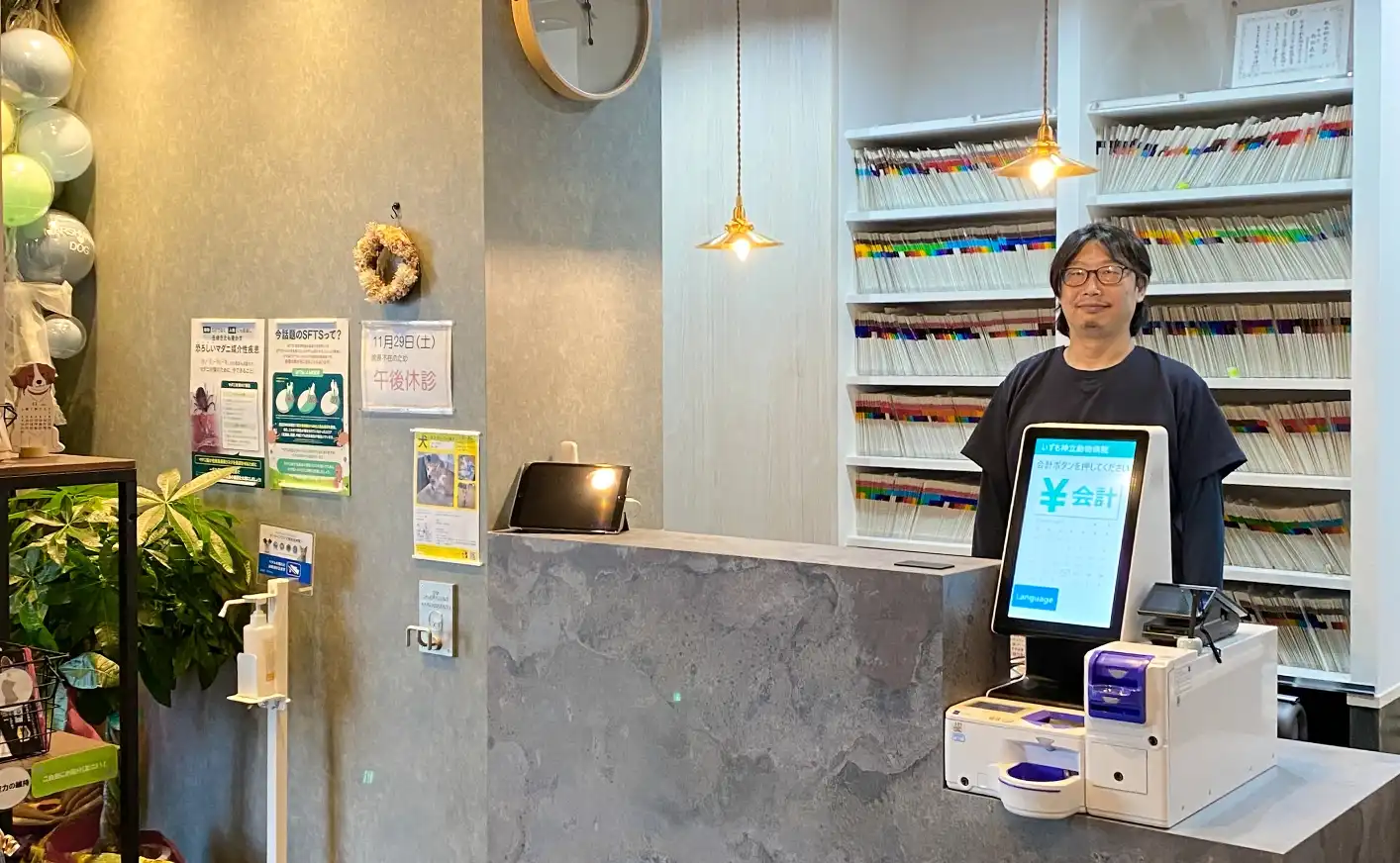 クリニックのスタッフさんと患者様が、対面でコミュニケーションをとりながら